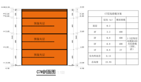 【楼板承重】首层2吨/㎡, 标准层0.4-1吨/㎡,顶层0.3-0.4吨/㎡