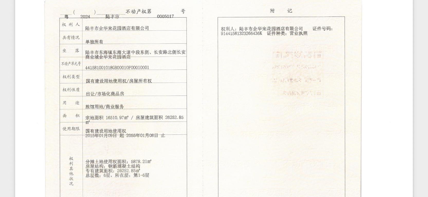 金华来花园酒店:地上6层,建筑面积26252.85平方米;地下1层4894.38平方米,总建筑面积31151.23平方米,用地面积约5650平方米,酒店坐北朝南,南面配套8996.28平方的绿化广场用地,酒店地下室可停车100辆,广场可停车200辆。
