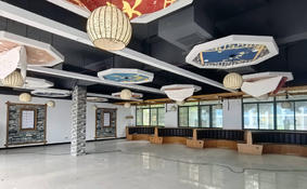 (1)商业街东楼一层660平方,层高3.67米,有12个小铺(内部墙体可打通);二楼973平方为大通铺,层高3.67米;两层一起1633平方;