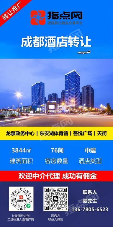 龙府家园酒店是一家秉承“来这里,即家里”的待客理念,精心设计,精湛施工,匠心打造的极富设计感的商旅酒店,每一个细节都透着主人无微不至的用心和关怀。酒店位于龙泉街道北泉路与翠龙街交叉口,酒店建筑面积4000平方米,其中客房面积近4000平米,布置各类客房76间,早餐厅兼会议厅300平米,餐位70余个。并配套洗衣房,会议室等 酒店地理位置优越,毗邻龙泉政务中心,吾悦广场和大运会主会场,周边配套齐全,有永辉超市,迪卡龙,苏宁易购、沃尔玛及红星美凯龙等大型购物中心。交通便利,离地铁2号线书房站步行仅10分钟,龙泉汽车总站步行20分钟。 酒店装修豪华,房型丰富,有满足商务的行政套房,娱乐套房和各类主题房;有满足旅游的亲子套房、情侣套房以及不同配置的双床房,大床房。 酒店一直保持良性经营,不断积累优质客户,有独立的会员体系,协议单位,客源保障,特别是音乐会期间满房率90%以上。 因酒店老板涉及其他投资急需资金周转,有意装让酒店经营权或者承包经营,欢迎有投资意向的客户洽谈。