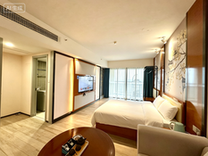 酒店公寓统一精装,洗衣机、冰箱配套齐全,布草运营物资一起打包赠送拎包即可运营。