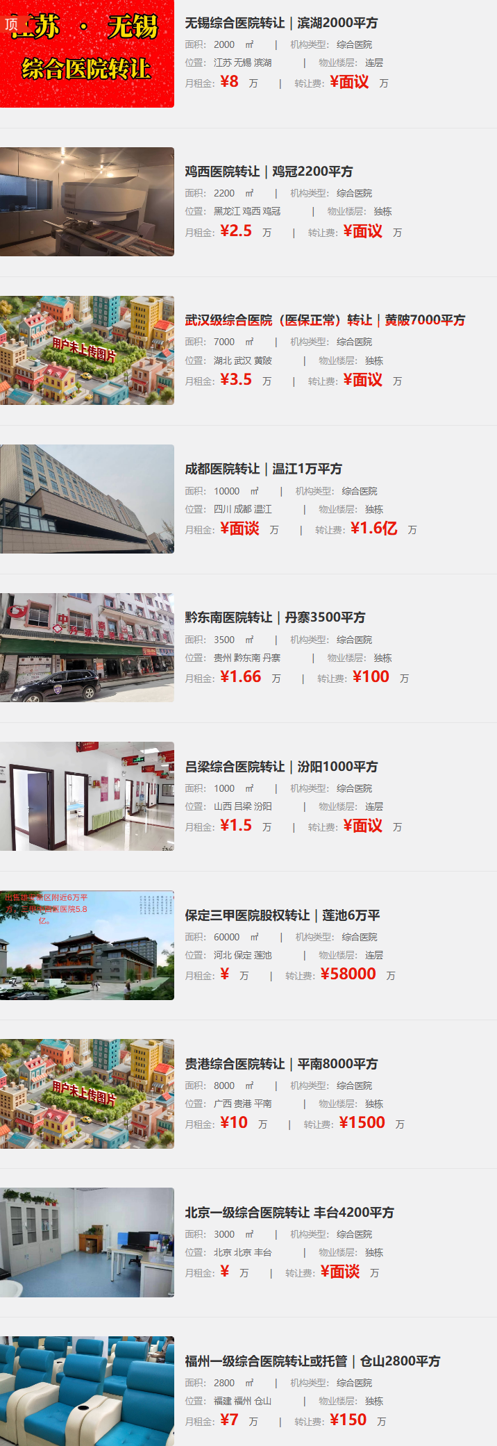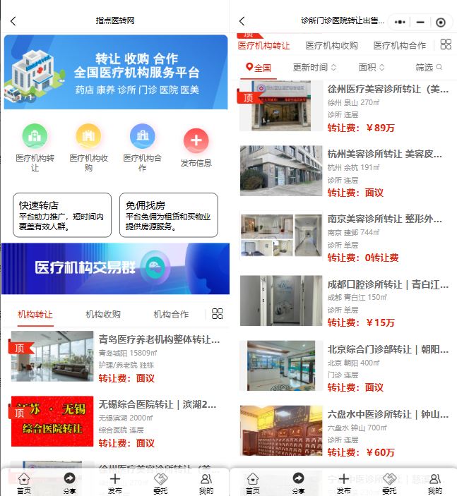 平台汇聚全国各级医疗机构资源,涵盖综合、专科、门诊、诊所等多元类型,信息丰富全面,从地理位置、经营面积到设备清单、转让费用等关键要素一目了然。其智能匹配系统能精准推送适配项目,大幅提升交易效率。