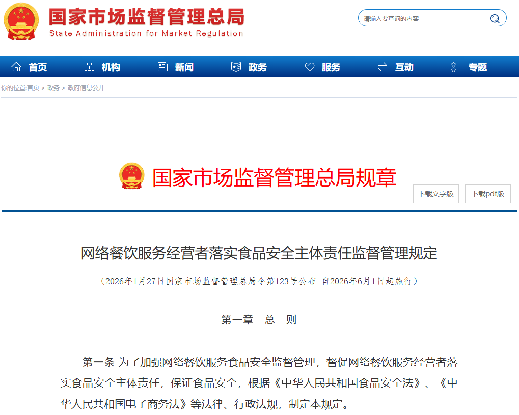 国家市场监督管理总局近日正式发布《网络餐饮服务食品安全监督管理办法(修订版)》,宣布自2025年6月1日起在全国范围内实施。这一新规的出台,标志着我国外卖行业将进入更加规范化、精细化的监管新阶段,整个行业生态将迎来系统性变革。