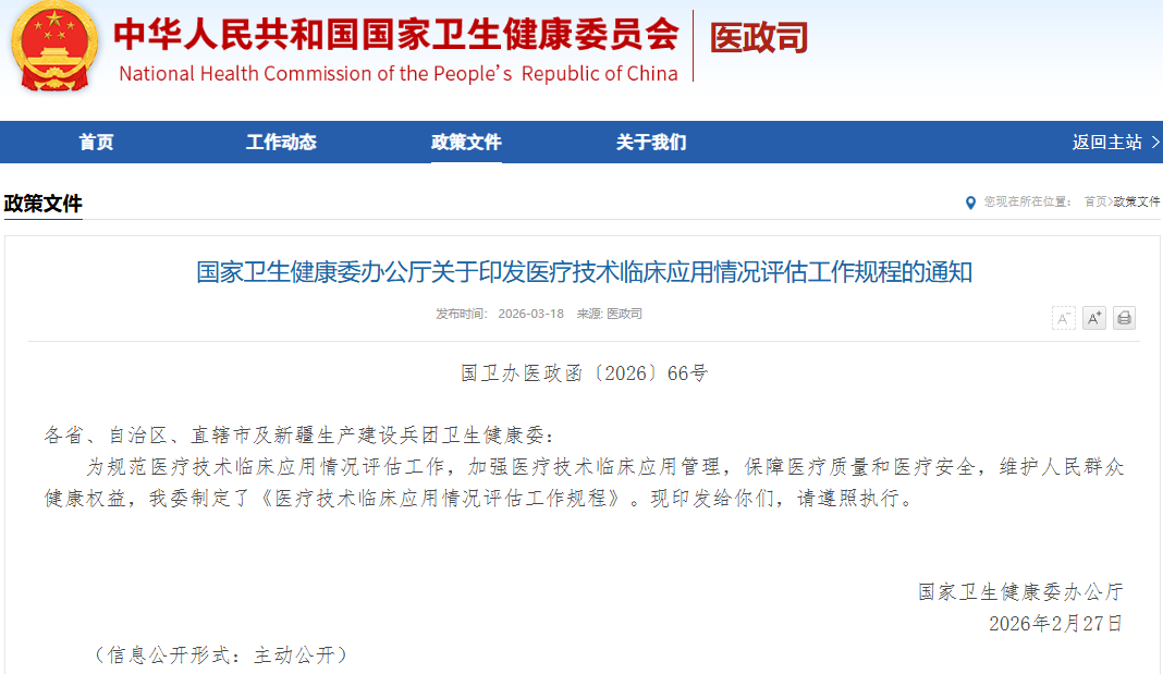 国家卫生健康委办公厅关于印发医疗技术临床应用情况评估工作规程的通知