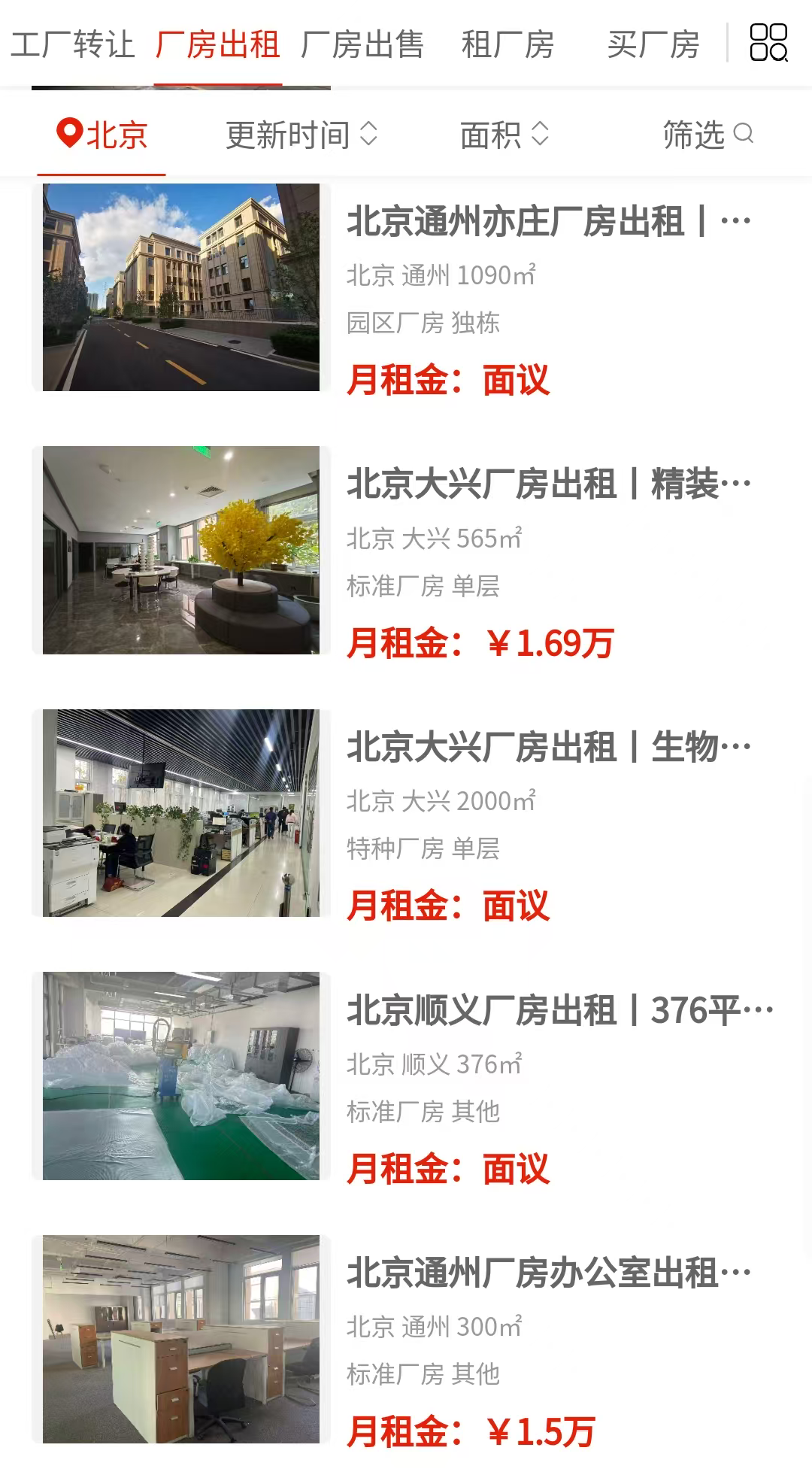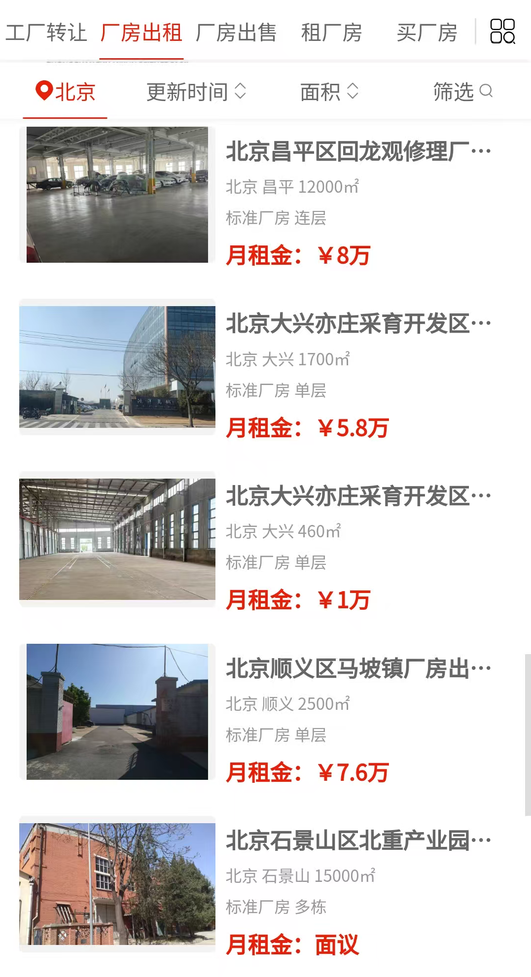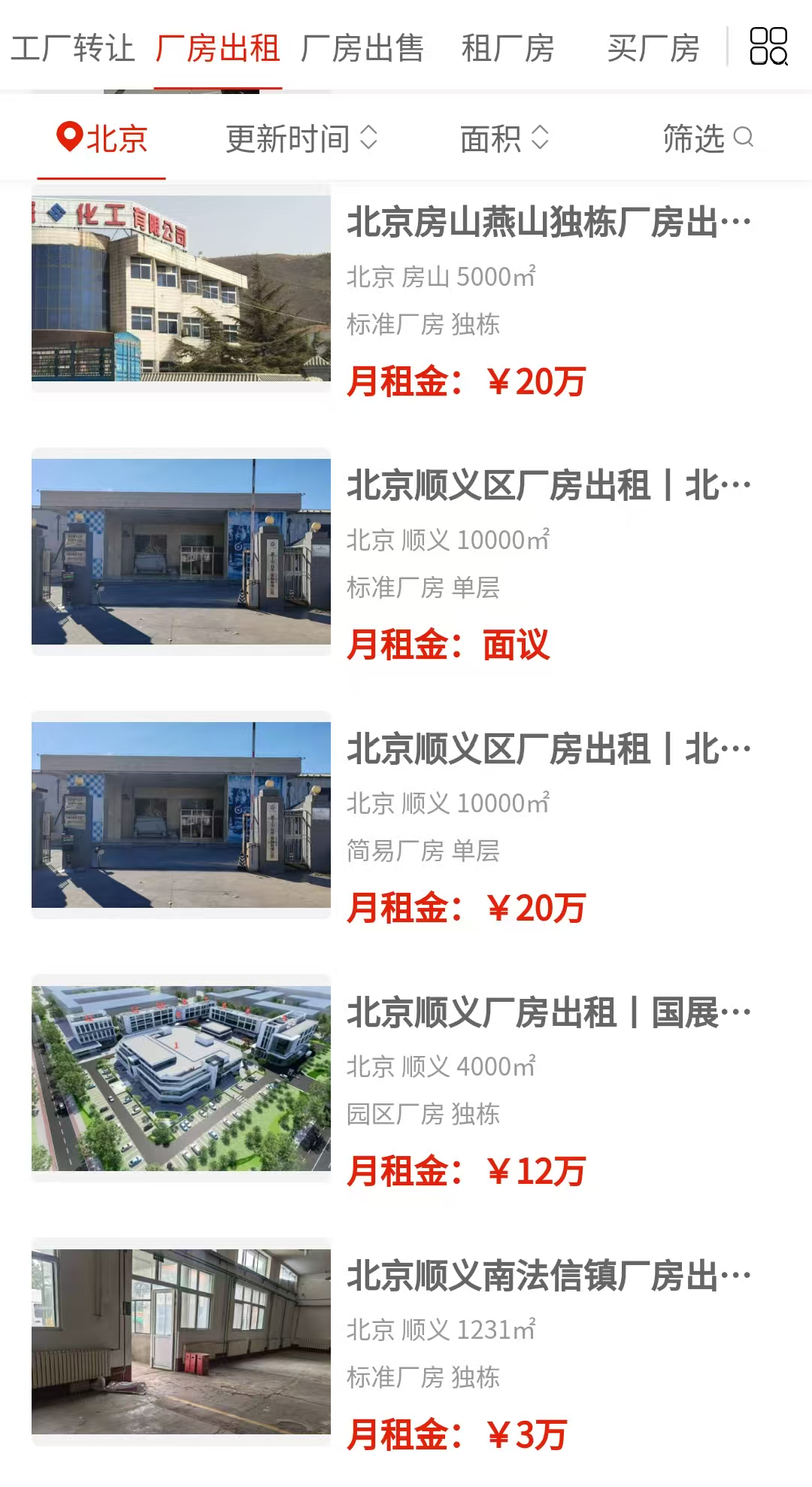顺义是这次房源最集中的区域,从几百平到上万平都有,而且独栋厂房特别多。