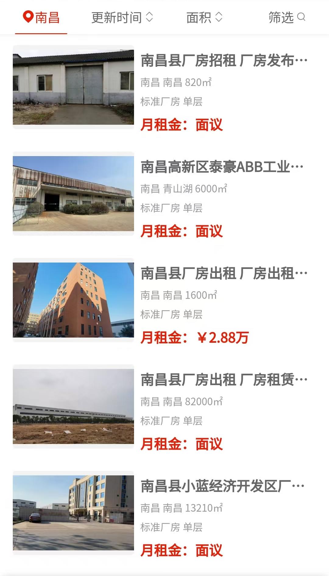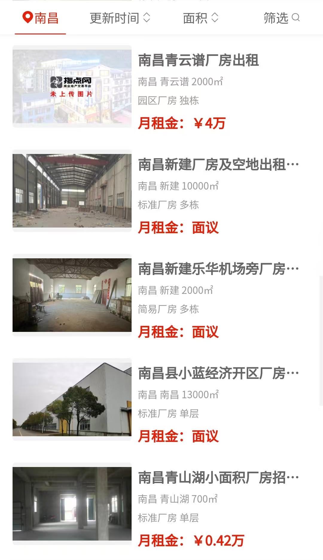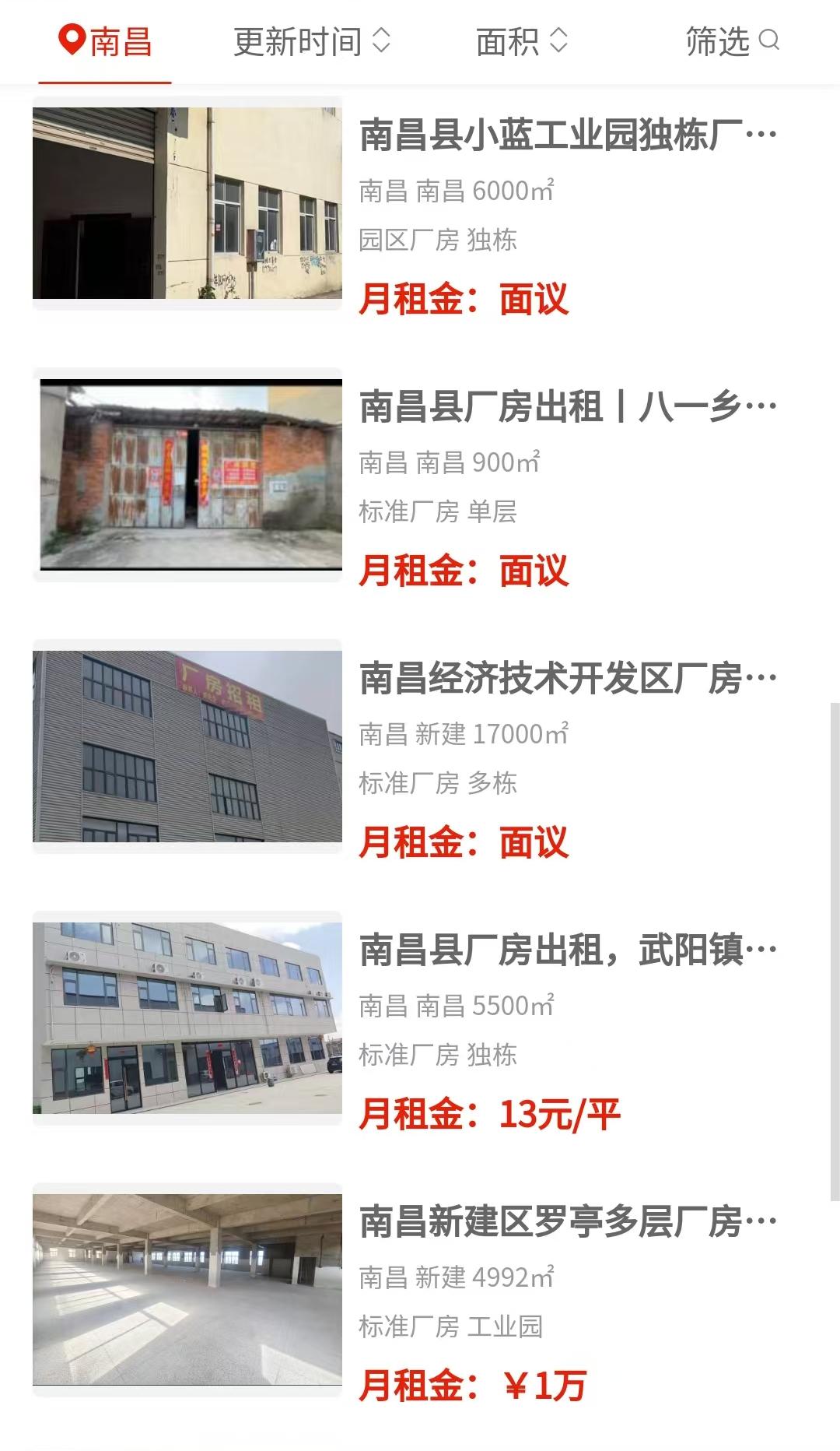 新建区昌北大道附近有六千四百平的多栋标准厂房招租,面议状态,位置靠近主干道,进出车方便。南昌经济技术开发区挂了一万七千平的多栋毛坯厂房,也是面议,适合需要大面积、自己装修的企业。