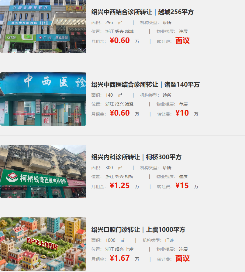 绍兴中西结合诊所转让|越城256平方