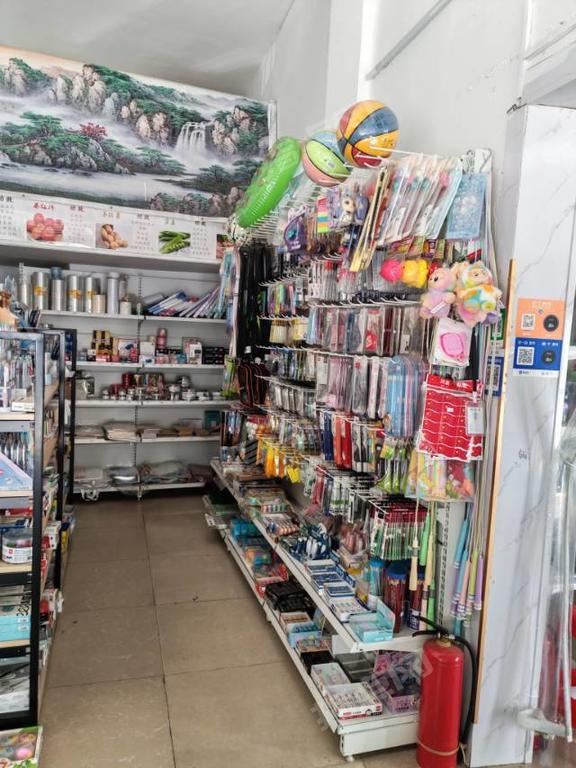 对面有一家开放大学,临近有一个小学,店铺分两间,一间卖学习文具,玩具,生活用品。一间卖零食酒水饮料冰棒,店内还有一台烤肠机,一个冷柜可以卖奶茶,冰粉,凉水等,有空调一台,冰箱一个,饮料柜一个,有打印机一台设备完善齐全