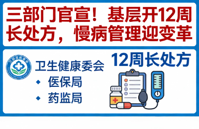 3月16日,国家医保局、国家卫生健康委、国家发展改革委三部门联合印发《关于医保支持基层医疗卫生服务发展的指导意见》,正式官宣一项重磅便民举措:符合条件的慢性病患者,在社区卫生服务中心、乡镇卫生院等基层医疗机构,一次可开具最长12周(3个月)的用药长处方。这一政策的落地,彻底改变了以往基层慢病处方多为4周以内的局限,直击慢病患者“每月跑医院、排队开药方”的痛点,标志着我国基层慢病管理迎来革命性变革,千万慢病家庭将直接受益。据悉,我国现有慢性病患者超4亿人,其中高血压、糖尿病、冠心病、脑梗后遗症、慢