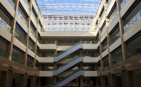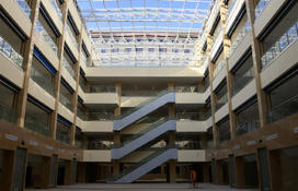 5、该医院门诊医技楼五层,设有诊室126间、大型示教室3间、远程医疗诊区2个、中药房(600平方米)、西药房、中成药房、煎药室、放射科、检验科、功能检查科、内镜中心、手术室、供应室、康复理疗科、针灸推拿科、熏蒸室和文化宣传展示区。手术室共设有8间:3间百级手术室,4间万级手术室,1间正负压手术室,配套有消毒供应室。预留有2间介入手术室。
